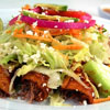 Carne o pollo, cebollas salteadas en aceite de oliva y ajonjolí al gusto.