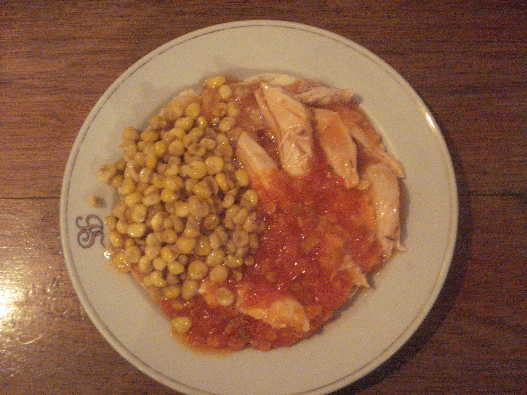 Carne o pollo, hogao y maíz tierno.